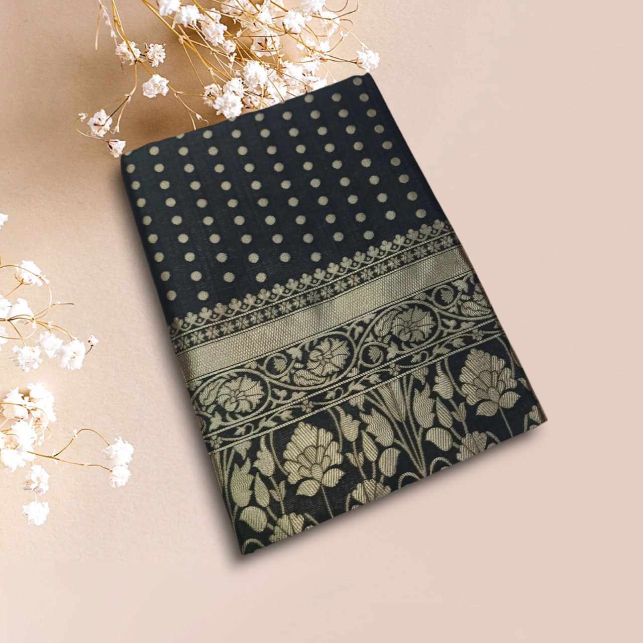 | Name : | MF 1830 BLACK SOFT LICHI SILK SAREE |