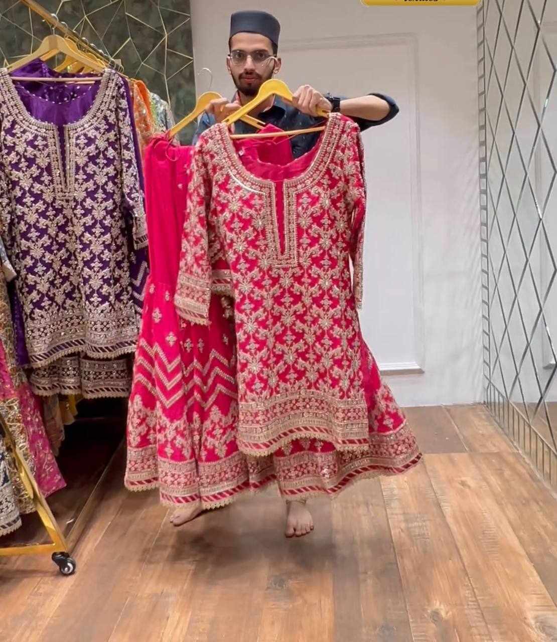 Top Fabric: Heavy Faux Georgette With Heavy 5mm Embroidery Sequence Work With Full Sleeve With Latkan Dori