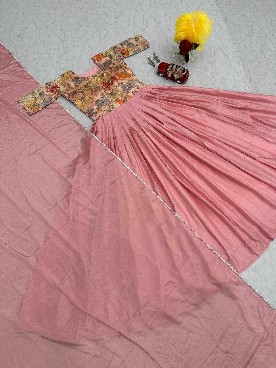 | Name : | PC 413 Pink Handwork & Kalamkari Print Gown |