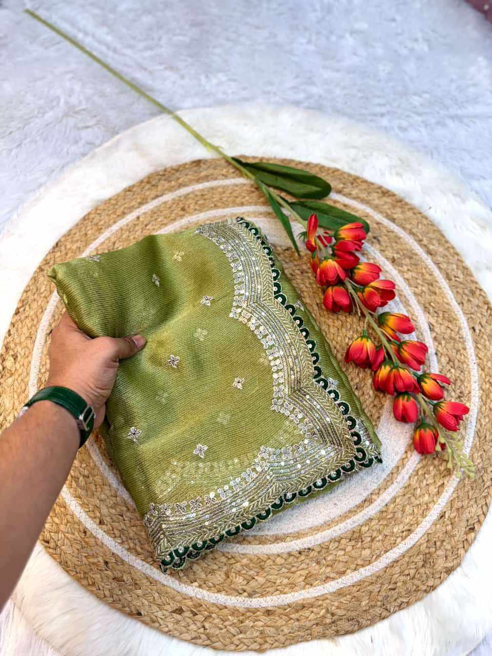 | Name : | RC Sitara Green Thread Embroidery Beautiful Saree |