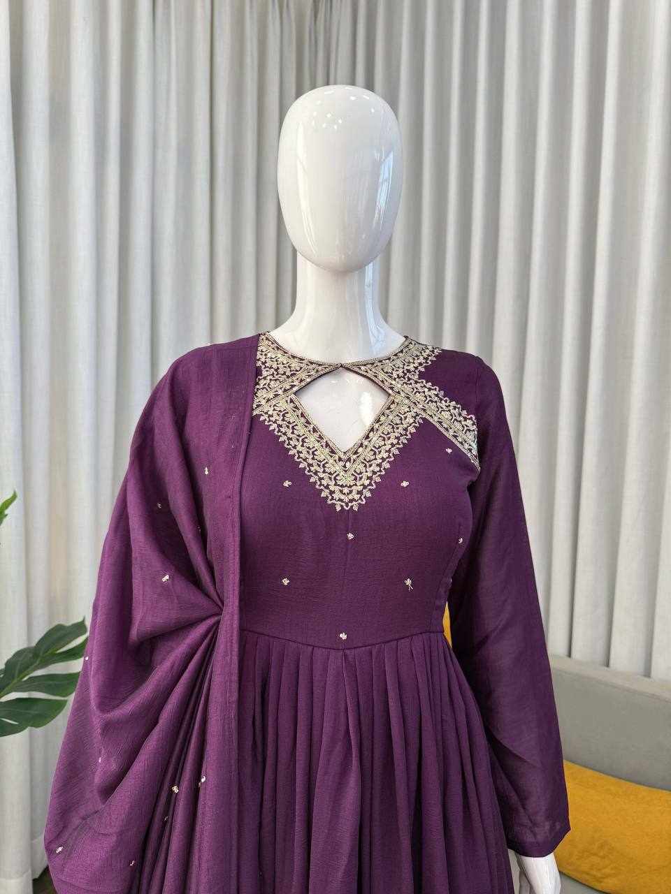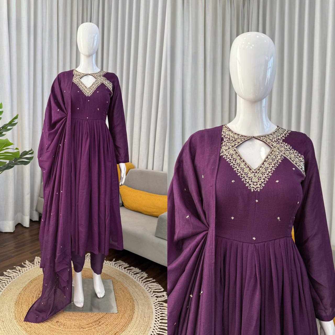 JKWH 997 Pure Fine Cotton Febric Embroidery Work A-line Kurti Set With Pocket