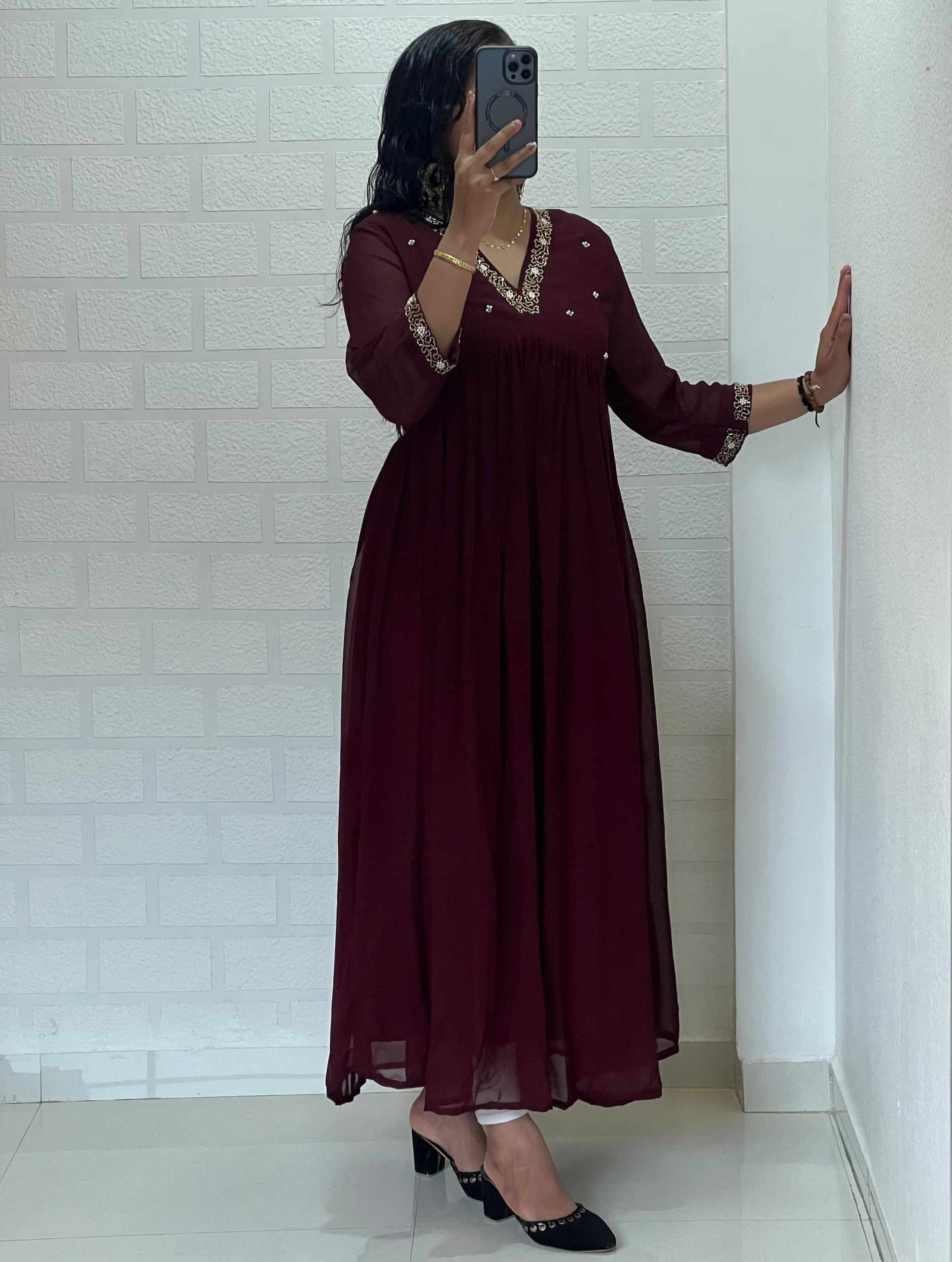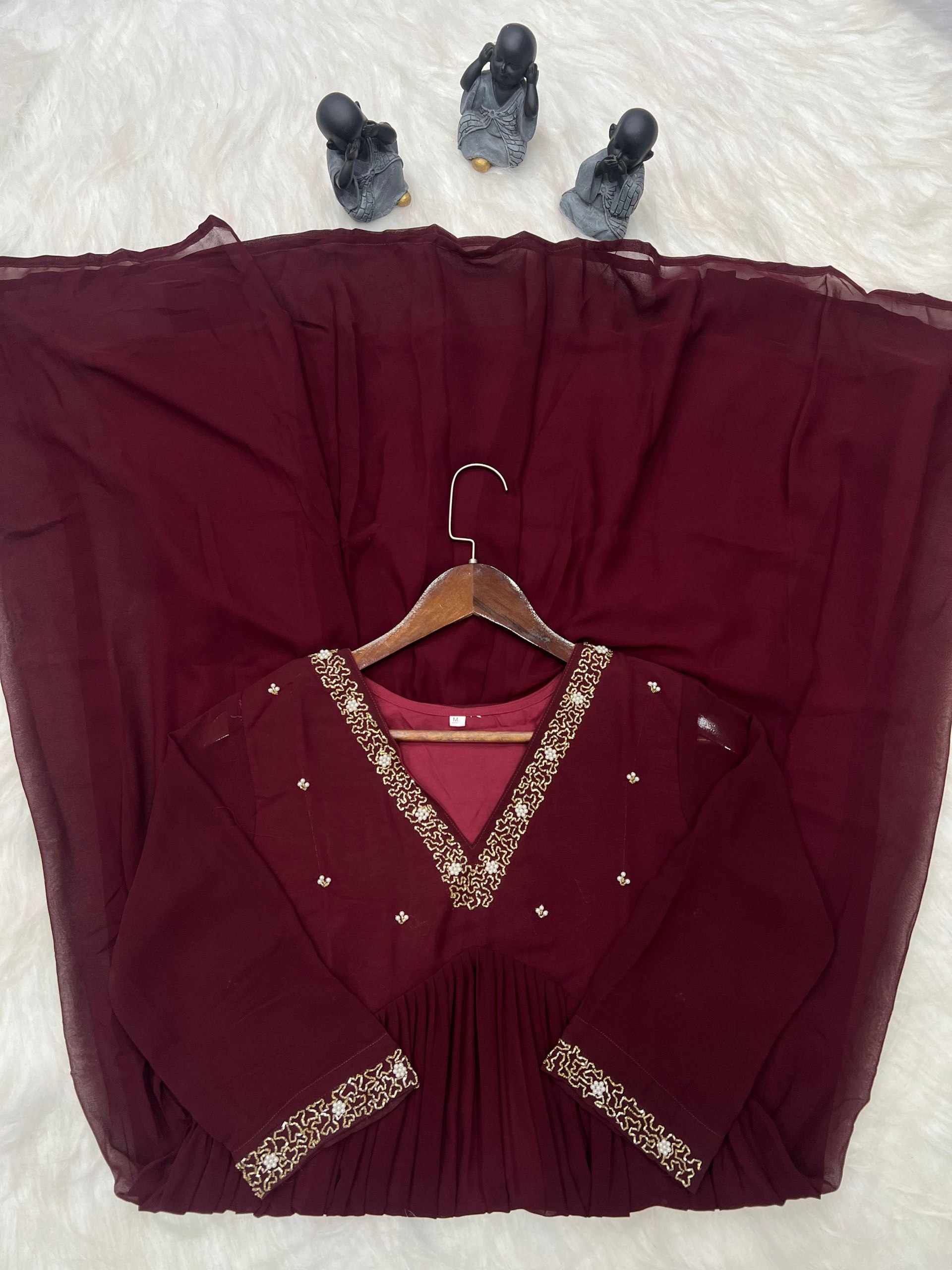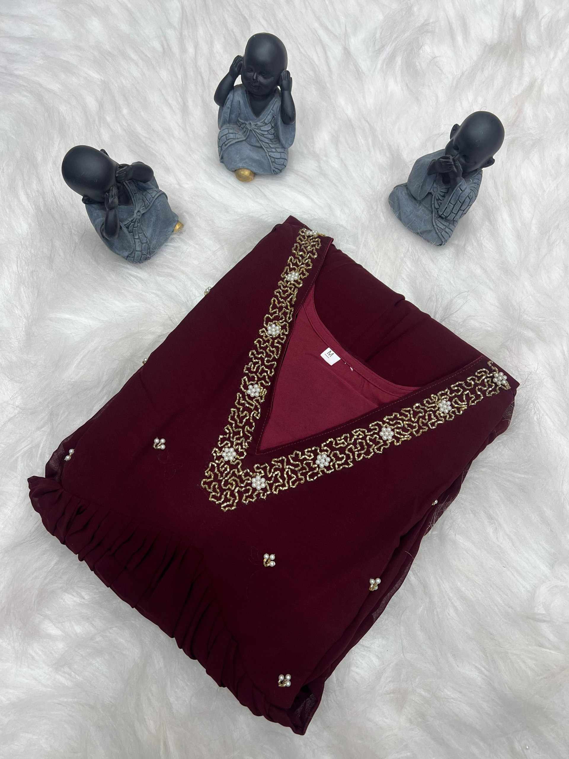 | Name : | WM10 MARRON BLOOMING GEORGETTE HANDWORK KURTI |