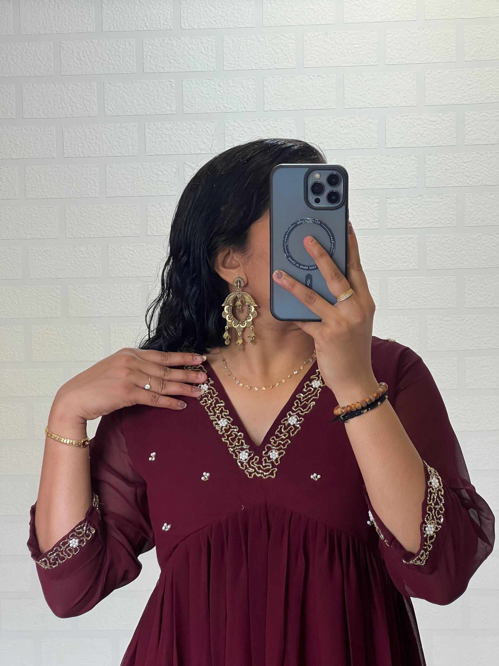Reviews for WM10 MARRON BLOOMING GEORGETTE HANDWORK KURTI