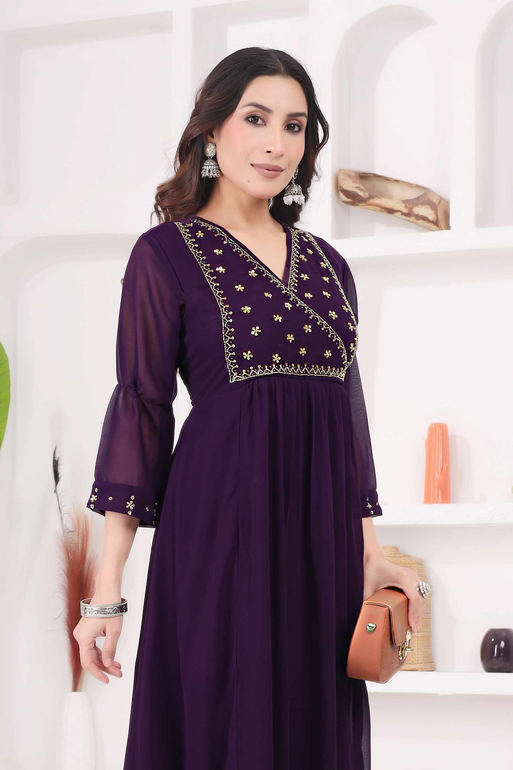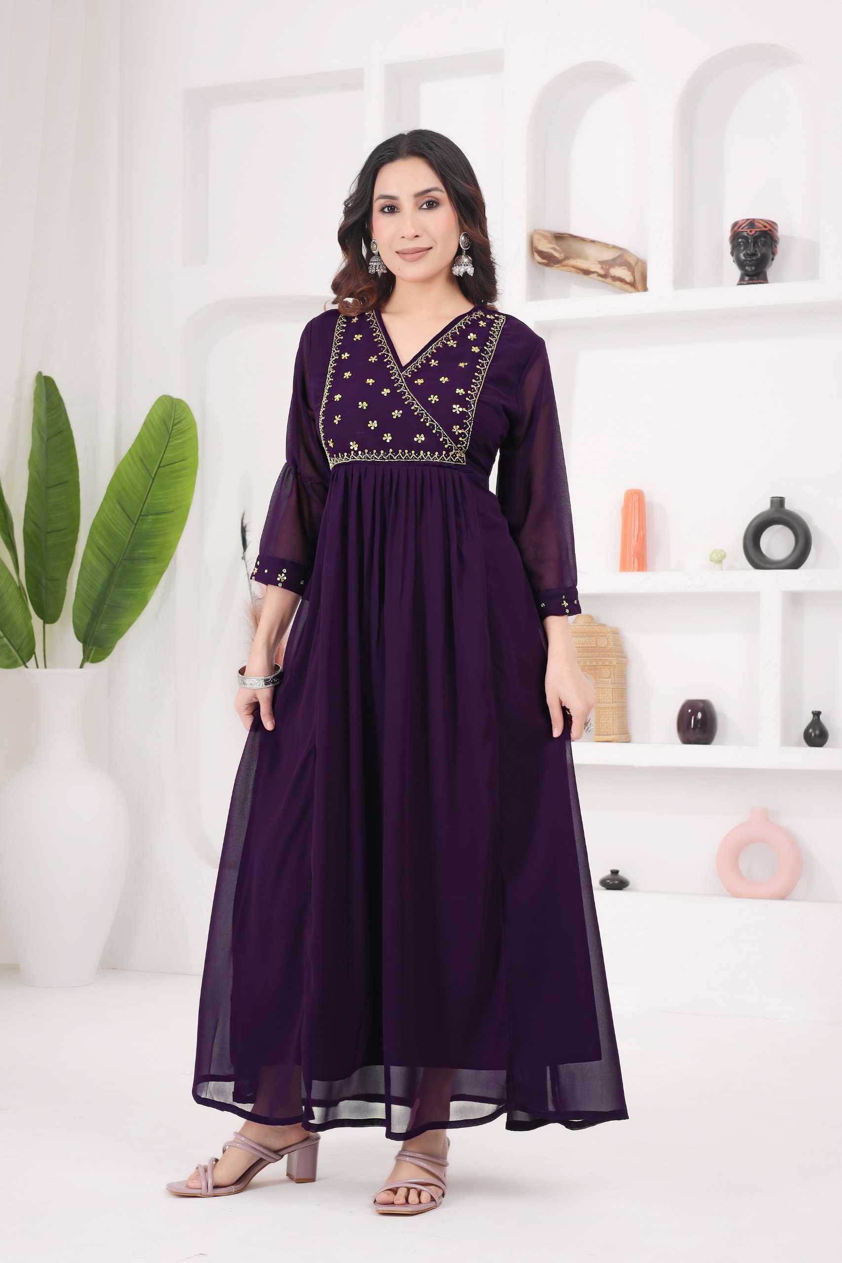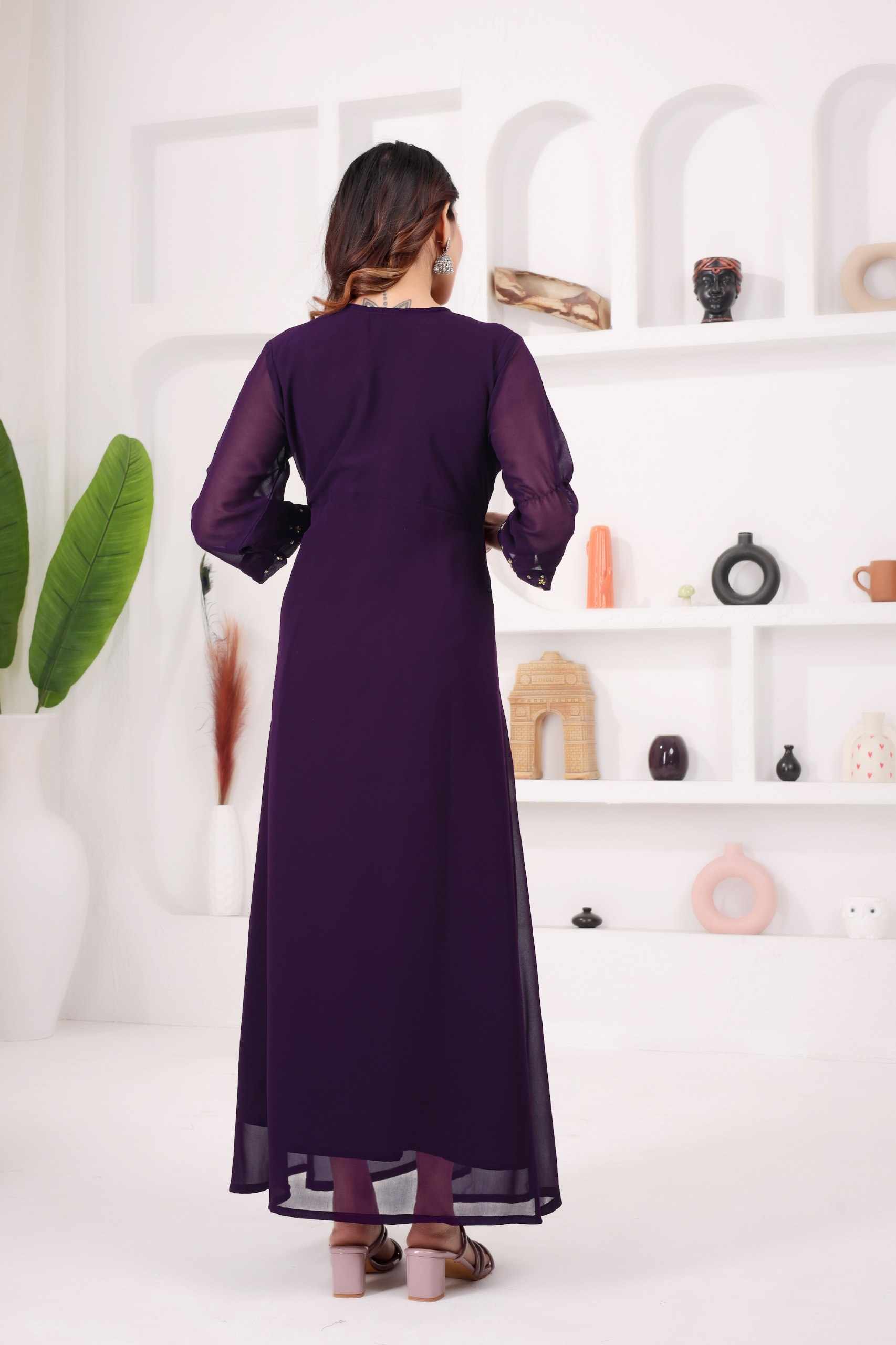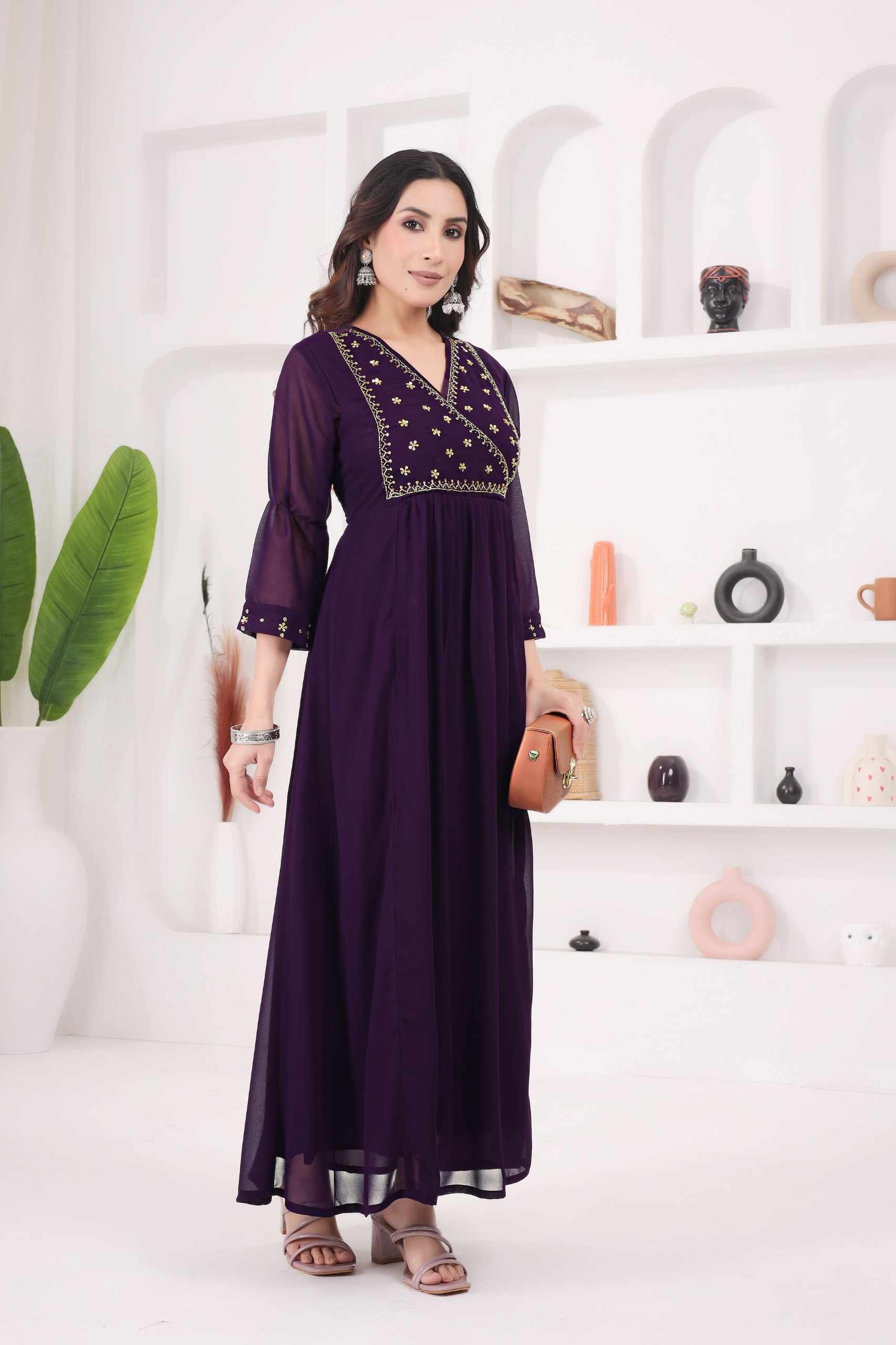 WM12 WINE BLOOMING GEORGETTE BEAUTIFUL HANDWORK KURTI